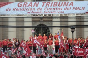El FMLN hizo un recuento de objetivos alcanzados en un año ante miles de correligionarios que asistieron a la «Gran Tribuna de Rendición de cuentas del FMLN al Pueblo Salvadoreño», en la Plaza Barrios. La celebración se realizó en el marco del IV año de la muerte de Schafik Handal y de los 30 años de formación del partido.