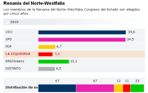 GUANARTEME.- Tras las elecciones Federales, de ayer, en Renania Norte Westfalia, La Izquierda volvió a crecer y contará con 11 representantes. Con el 5´6% se obtienen once representantes, justo y curioso. RNW cuenta con una población de 18 millones de habitantes.