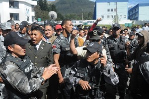 ANDES – QUITO.- Desde el Hospital de la Policía Nacional, en donde recibió asistencia médica tras las agresiones recibidas por la rebelión de efectivos de la fuerza pública apostados en el Regimiento Quito Nro. 1, el presidente de la República, Rafael Corra, afirmó que “este es un clarísimo intento de desestabilizar al país dirigido por la oposición”.