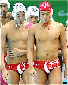 BBC-MUNDO.- Nadie sabe qué estaban pensando los diseñadores. Pero lo cierto es que los trajes de baño utilizados por el equipo de waterpolo de Singapur en los Juegos Asiáticos, disputados en China, se convirtieron en la sensación de la competencia.