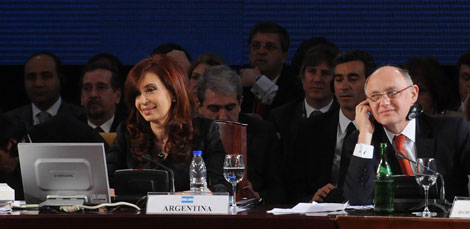 “Promover la universalización de la educación de calidad como un derecho humano fundamental e inalienable a ser protegido y garantizado por todos los Estados iberoamericanos”, describe uno de los artículos rubricados por los mandatarios, que en esta oportunidad utilizaron un sistema digital para firmar los documentos. Cristina celebró en su discurso la inclusión de la cláusula democrática y dijo que “el ejercicio constitucional es el único ámbito que genera libertad para cualquier proceso educativo”. Recordó “los episodios que nos ha tocado vivir en la región”, en alusión al intento de golpe de Estado en Ecuador del 30 de septiembre pasado, y pidió “que estemos todos dispuestos a cortar vinculación con quienes intenten o logren destituir a la democracia”. Lula tomó la palabra para homenajear a Kirchner: “de mi mandato cinco años conviví con Kirchner y no hubo en ningún otro momento de las relaciones Brasil-Argentina un dinamismo tan extraordinario” en las relaciones entre ambos países. “Fue una relación respetuosa pero al mismo tiempo muy fuerte, había mucha disputa entre ambos países y pudimos vencer eso, y es fundamental”, indicó el mandatario brasileño. “Argentina tenía a Maradona en fútbol y a Kirchner en política”, indicó Lula, y recordó “cuántas veces escuchaba decir que Argentina no iba a funcionar y la economía se seguía recuperando”. “Kirchner recuperó la economía argentina con coraje, enfrentando al mercado, al FMI, a analistas europeos que sabían todo cuando había crisis en América Latina pero no saben nada cuando hay crisis en los países ricos”, graficó Lula. “Antes se hablaba de Argentina antes y después de Perón; ahora hay un antes y un después de los Kirchner. Néstor recuperó la dignidad del pueblo argentino”, resumió el mandatario brasileño. El rey Juan Carlos de Borbón subrayó que “Kirchner puso el énfasis en la recuperación de los derechos humanos” y manifestó su “gratitud por las numerosas muestras de amistad personal y hacia España”. La parte de la cumbre dedicada a Kirchner finalizó con un aplauso de un minuto que todos los presentes brindaron al ex mandatario y secretario general de Unasur. El canciller Héctor Timerman tomó la palabra y calificó la aprobación de la cláusula democrática como un “paso sustantivo en la consolidación del espacio americano”. El presidente mexicano Felipe Calderón pidió un mayor compromiso de los países iberoamericanos con los objetivos de la cumbre climática que cierra dentro de una semana en Cancún, mientras que Rafael Correa volvió a brindar un detalle del intento de golpe en su contra y recordó a Néstor Kirchner. “Cuando fui a su velorio en Buenos Aires, la gente no decía gracias por haber aumentado las reservas, decía gracias Néstor por habernos devuelto la dignidad”, relató Correa, y remató: “Gracias Néstor por lo que has hecho por América Latina”. En otro orden, el documento sobre Malvinas rubricado por los jefes de Estado tiene tres puntos básicos: pide que el Reino Unido e Inglaterra reanuden las negociaciones por Malvinas, a la vez que cuestionan las exploraciones petroleras y los ejercicios militares llevados a cabo por los británicos en las islas. En la cumbre estuvieron representados 21 de los 22 países que integran el denominado “sistema iberoamericano” creado a partir de la cumbre de Guadalajara en 1991. El único país no invitado al encuentro fue Honduras, donde el gobierno actualmente en el poder surgió del golpe militar llevado a cabo el 28 de junio de 2009. Los 21 países participantes de la cumbre en Mar del Plata fueron Andorra, Argentina, Bolivia, Brasil, Colombia, Costa Rica, Cuba, Chile, República Dominicana, Ecuador, El Salvador, España, Guatemala, México, Nicaragua, Panamá, Paraguay, Perú, Portugal, Uruguay y Venezuela. |