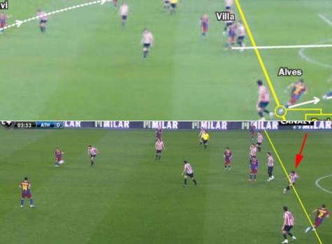 AS | 21/02/2011.- Por un error en la infografía que ilustra en la edición impresa de este lunes del diario AS el posible fuera de juego de Alves en el gol de Villa contra el Athletic, no figura en la imagen el defensa del equipo bilbaíno que podría estar en línea con el lateral derecho del Barcelona. Pedimos disculpas por ello.