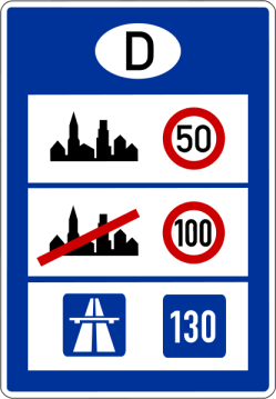 Las Autobahnen alemanas no tienen límite de velocidad (sólo recomendación de circular a 130). En la antigua RDA, las Autobahnen tenían un límite de 100 Km/h, pero ello era debido al pésimo estado de las calzadas. ¿No ven más lógico lo de la señal de arriba?