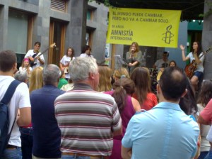 Por eso el pasado día 28 estuve con Amnistía en el pequeño pero bonito y original acto conmemorativo que hizo por estos lares. Cantaron los niños de las escuelas de música, y finalmente las palabras de rigor. También la batukada estuvo presente. Espero que AI no dure otros 50 años, porque eso significaría que los derechos humanos son, por fín, respetados en el mundo.
