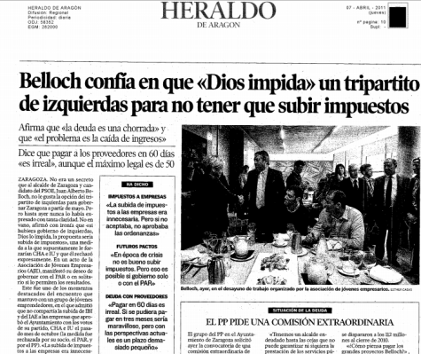 Segundo, la suma de votos dice que los zaragozanos son de izquierda, pero también dice que no quieren que Belloch sea alcalde por 21 a 10. Si Belloch fuera un caballero de la política, que no lo es, hubiera hecho como Elorza o como Hereu, pero no, prefiere seguir el que dejarle paso a alguien de su partido que pudiera conformar algo más sólido.
