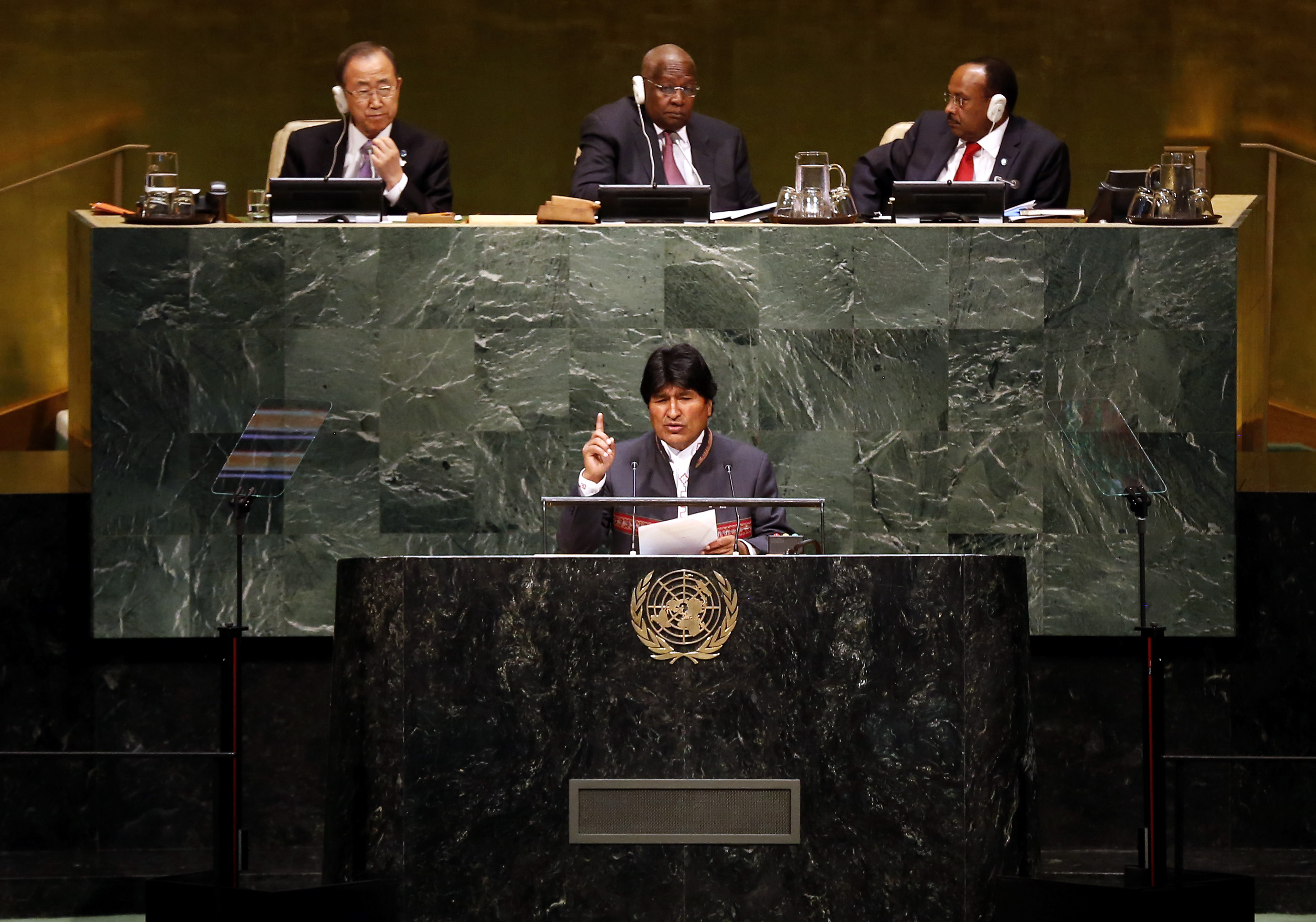 Nueva York, 24 sep (ABI).- El presidente boliviano, Evo Morales, afirmó el miércoles, en el debate general del 69 período de sesiones de la Asamblea General de las Naciones Unidas, que el único camino para acabar con la pobreza, defender la vida y defender la Madre Tierra (naturaleza) es acabar con el sistema capitalista y con el pensamiento imperialista.