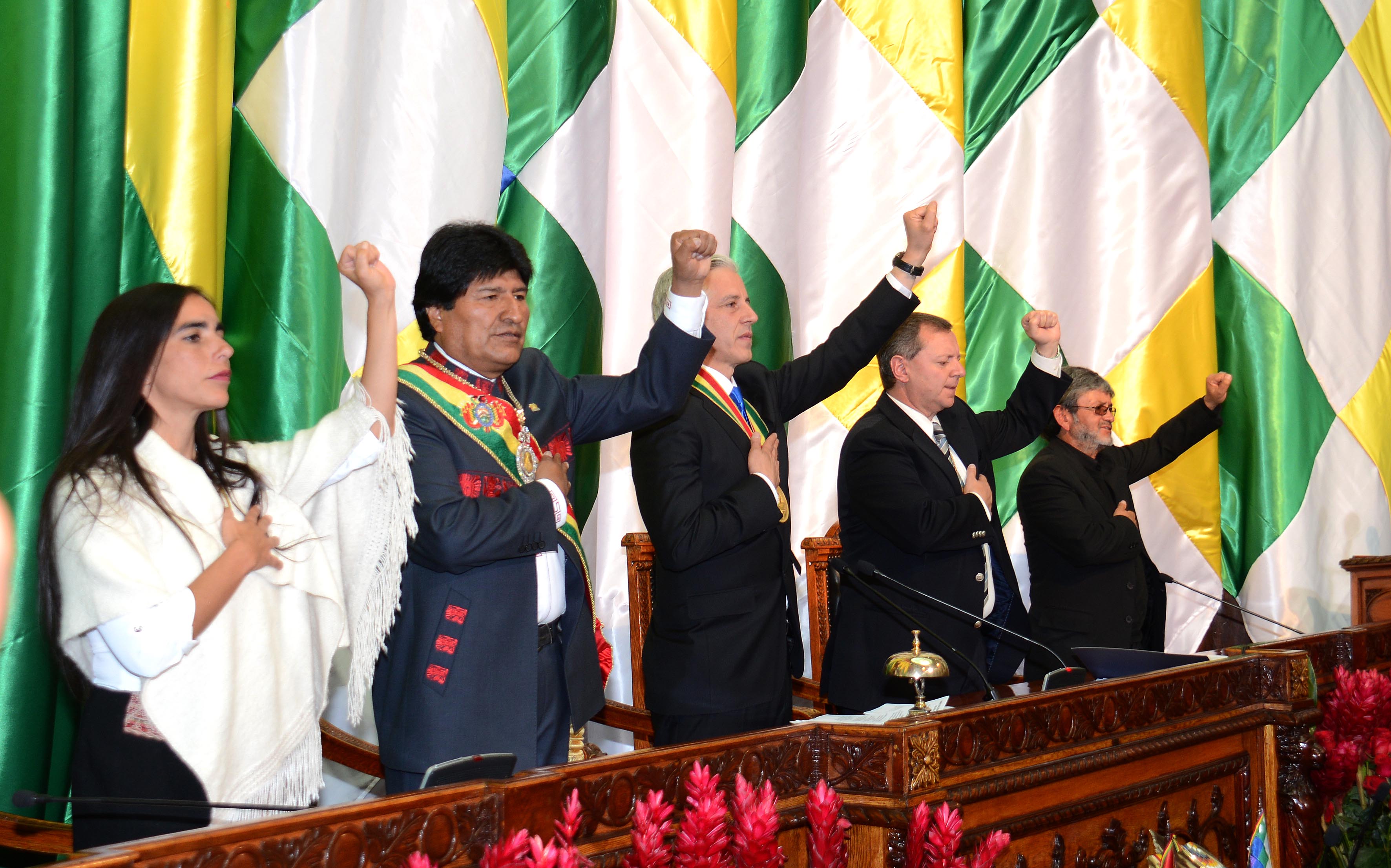 En la sesión de investidura del nuevo mandato del presidente Evo Morales en la Asamblea Legislativa Plurinacional (ALP), el segundo del Ejecutivo boliviano consideró que en el socialismo «hay una sola administración de la riqueza que tiene la llave del futuro, la comunitaria que sólo surge y se expande en base a la acción voluntaria de los trabajadores, al ejemplo y experiencia voluntaria de la propia sociedad».